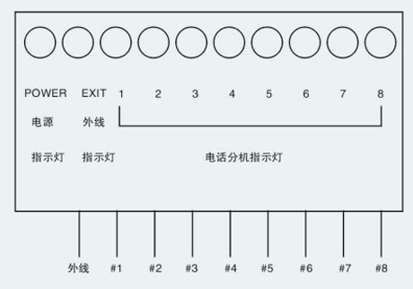 打外線電話直接撥外線號碼即可,打內(nèi)線分機(jī),先按“#”再按分機(jī)號碼(1、2、3、4、5、6、7、8),此時主叫方會聽到接通等待音,對方響鈴,等對方摘機(jī)即可通話。若響鈴6次,對方無人接,主叫方聽到忙音。