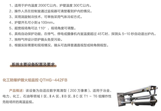 爐窯高溫監(jiān)測監(jiān)控系統(tǒng)是專為工業(yè)高溫爐窯監(jiān)測監(jiān)控的設(shè)計的智慧管理平臺,是針對爐壁開孔和爐窯視像有嚴(yán)格要求的高溫爐窯而研制的高溫工業(yè)電視。利用特種高溫孔式光學(xué)鏡頭,鏡頭設(shè)計采用中繼物鏡,兩次成像系統(tǒng),使像面在遠(yuǎn)離觀察孔的CCD靶面上形成,最大限度的減少進(jìn)入攝像機(jī)的熱輻射,致力為冶金、電力、建材、礦山、化工等行業(yè)服務(wù)。我公司研發(fā)主導(dǎo)產(chǎn)品已擁有第三代SG內(nèi)窺式高溫工業(yè)電視系列、爐壁式高溫工業(yè)電視系列、內(nèi)窺式拐角高溫工業(yè)電視系列、鍋爐汽包水位電視系統(tǒng)等成套設(shè)備,以及各種風(fēng)冷防護(hù)罩,水冷防護(hù)罩,渦旋制冷防護(hù)罩等工業(yè)監(jiān)控設(shè)備配套產(chǎn)品。產(chǎn)品廣泛應(yīng)用于鋼鐵廠加熱爐、退火爐,電廠鍋爐爐膛火焰、水泥廠回轉(zhuǎn)窯窯頭看火、篦冷機(jī)看料、玻璃廠玻璃熔窯等特殊高溫環(huán)境。幫助用戶進(jìn)行工業(yè)爐實(shí)時電視監(jiān)測及控制,解決設(shè)備的運(yùn)行故障等,對用戶改善產(chǎn)品質(zhì)量、降低成本、安全生產(chǎn)有著獨(dú)特的成效。受到了用戶的一致好評。